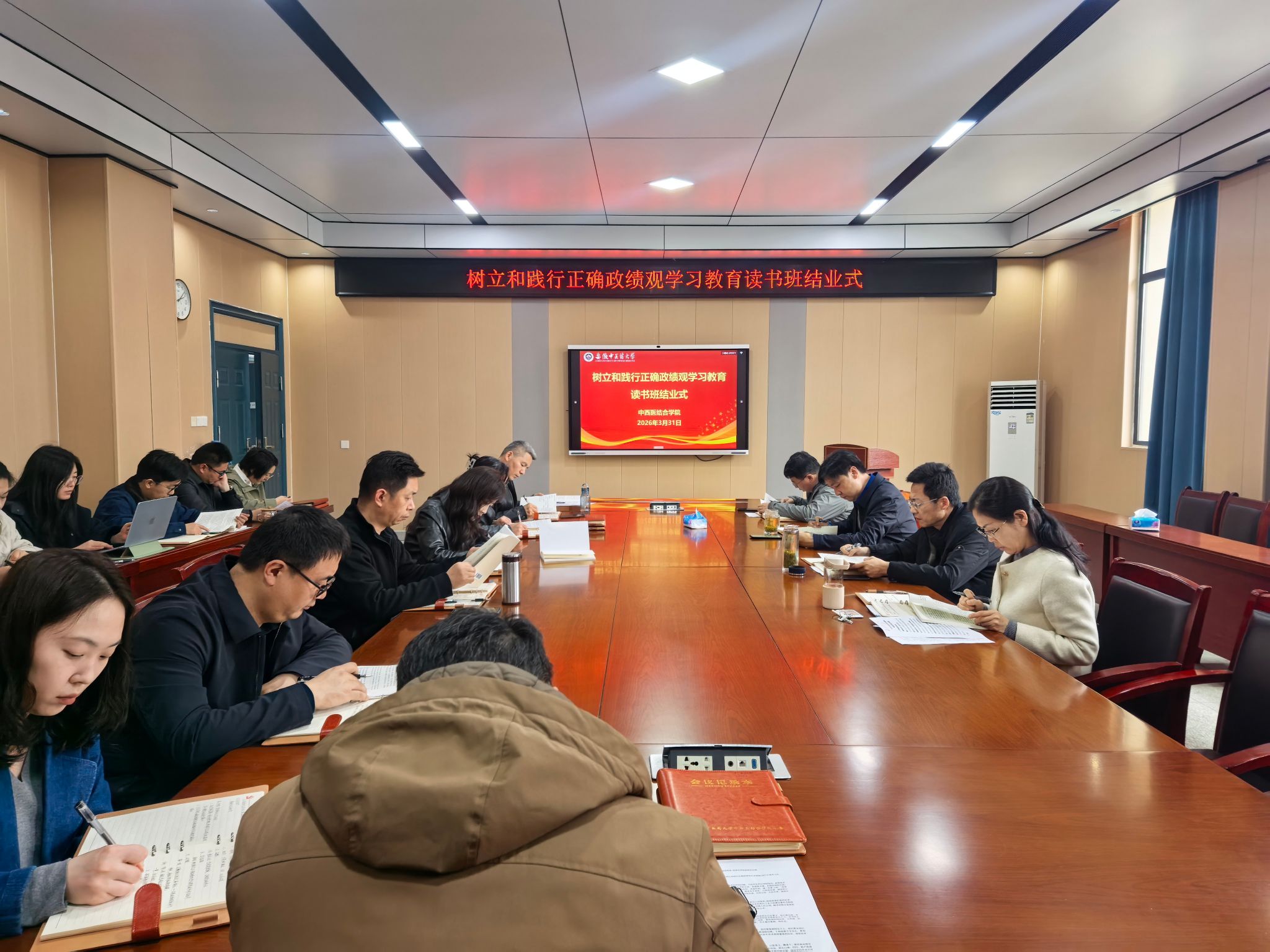 3月31日下午,中西医结合学院党委举办树立和践行正确政绩观学习教育读书班结业式。学院党委理论学习中心组成员、各党支部书记参加结业式,结业式由学院党委书记李舰主持。