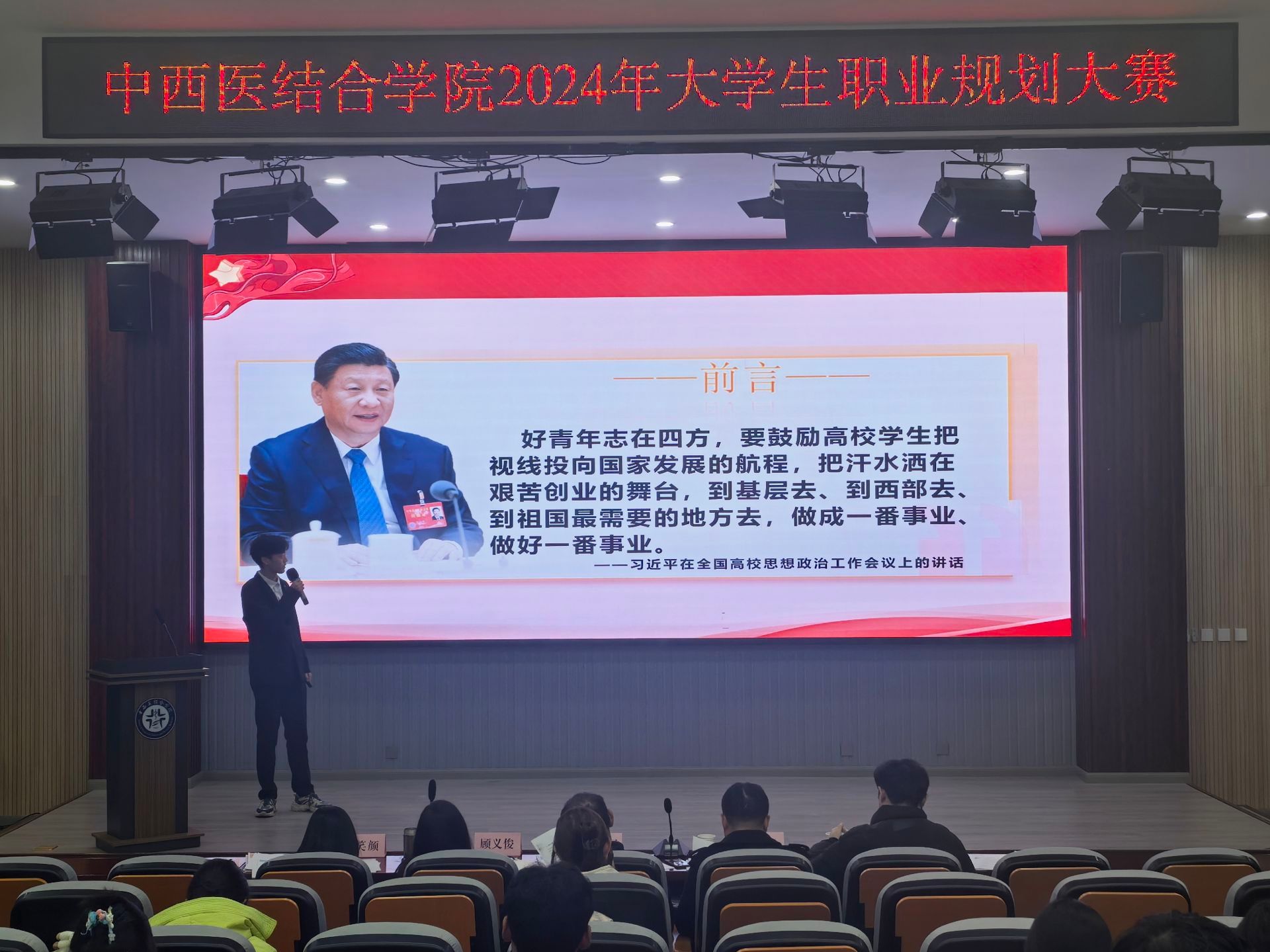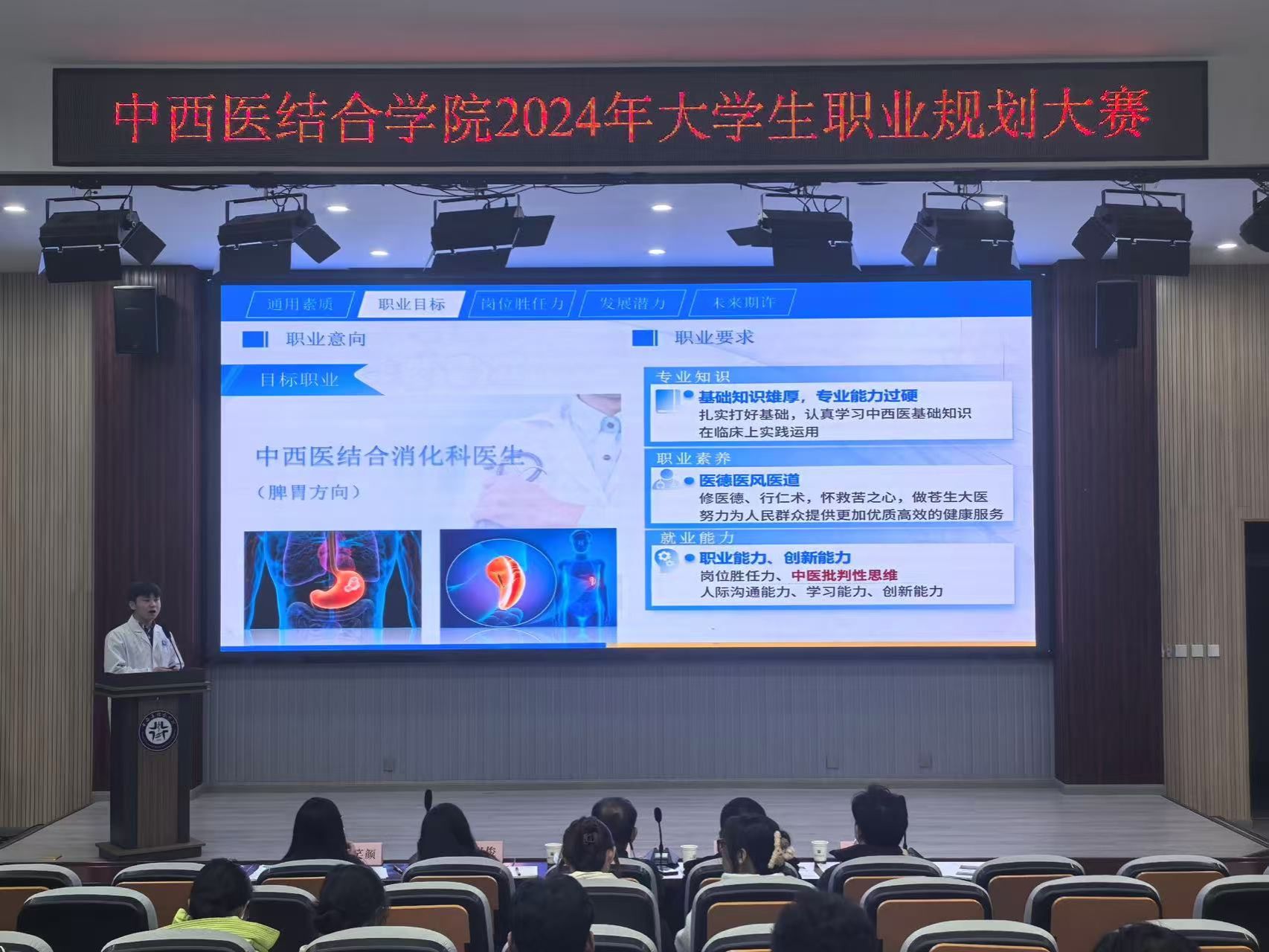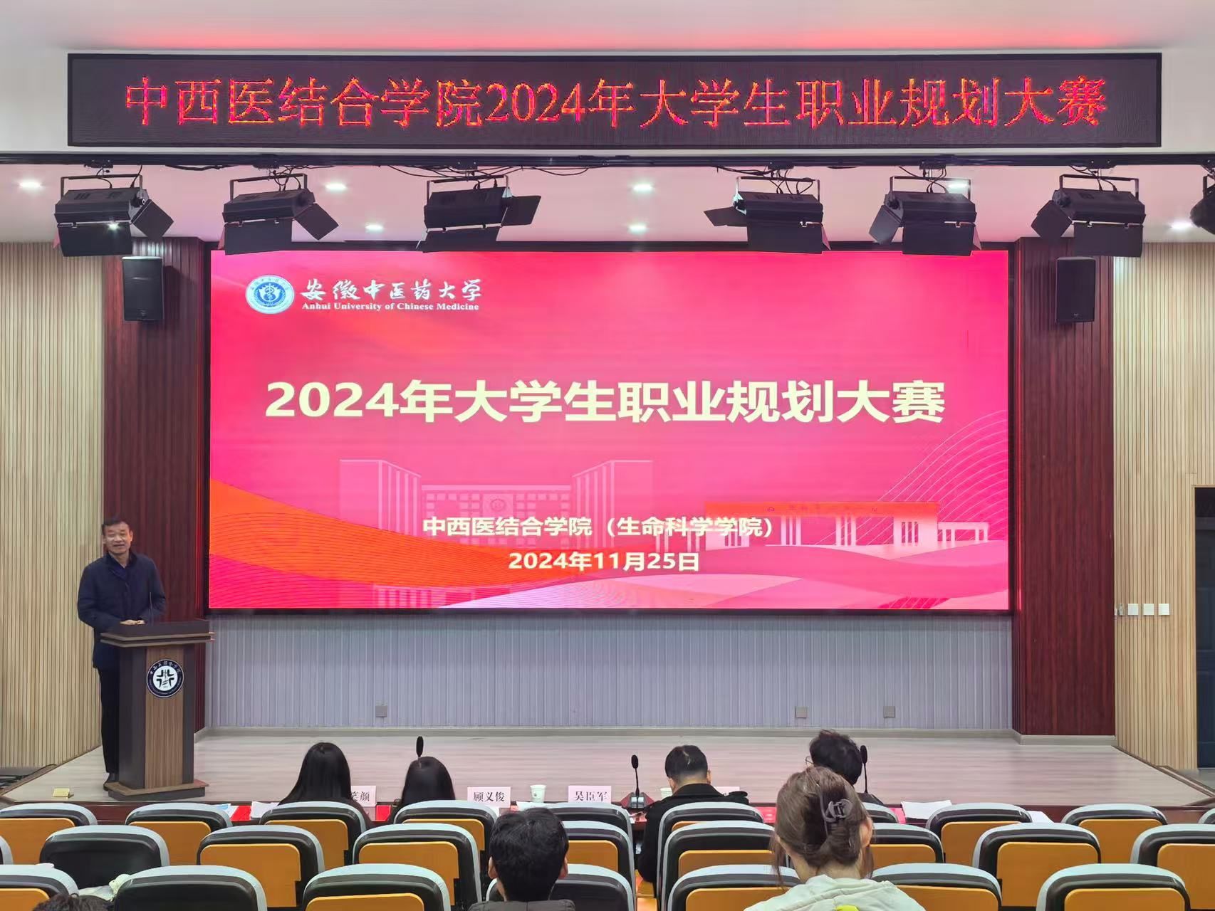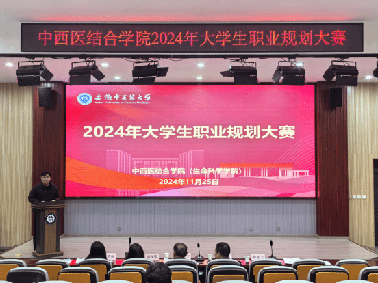 为了引导学生树立正确的成长成才观和择业就业观,科学合理规划学业与职业发展,11月25日晚上,中西医结合学院在学院B254报告厅举办2024年大学生职业规划大赛,大赛邀请创新创业学院副院长(正处级)吴臣军、中西医结合学院党委副书记顾义俊、学生处就业信息科科长谢啸、全国首届大学生职业规划大赛国赛铜奖获得者张笑颜、安徽省赛金奖获得者陈正宇担任评委。学院各年级200余名学生现场观赛。