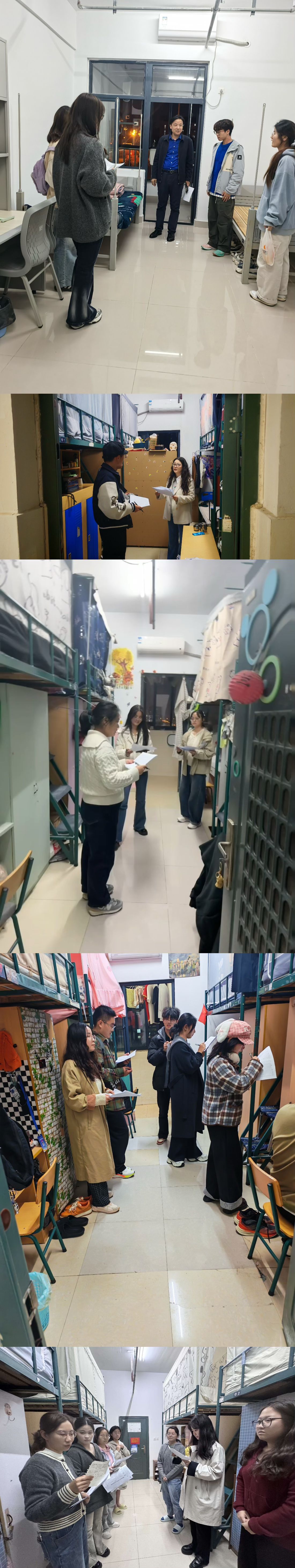 本次检查由学院党委副书记彭青和带队,全体辅导员及学生骨干组成多个检查小组,对学院所属楼栋所有本科生、研究生宿舍进行了逐一走访和细致排查。