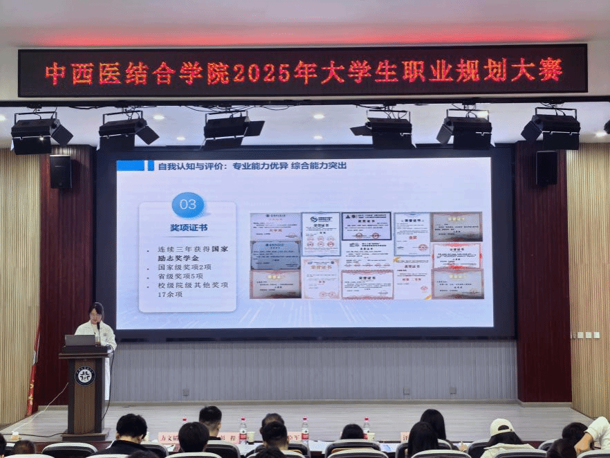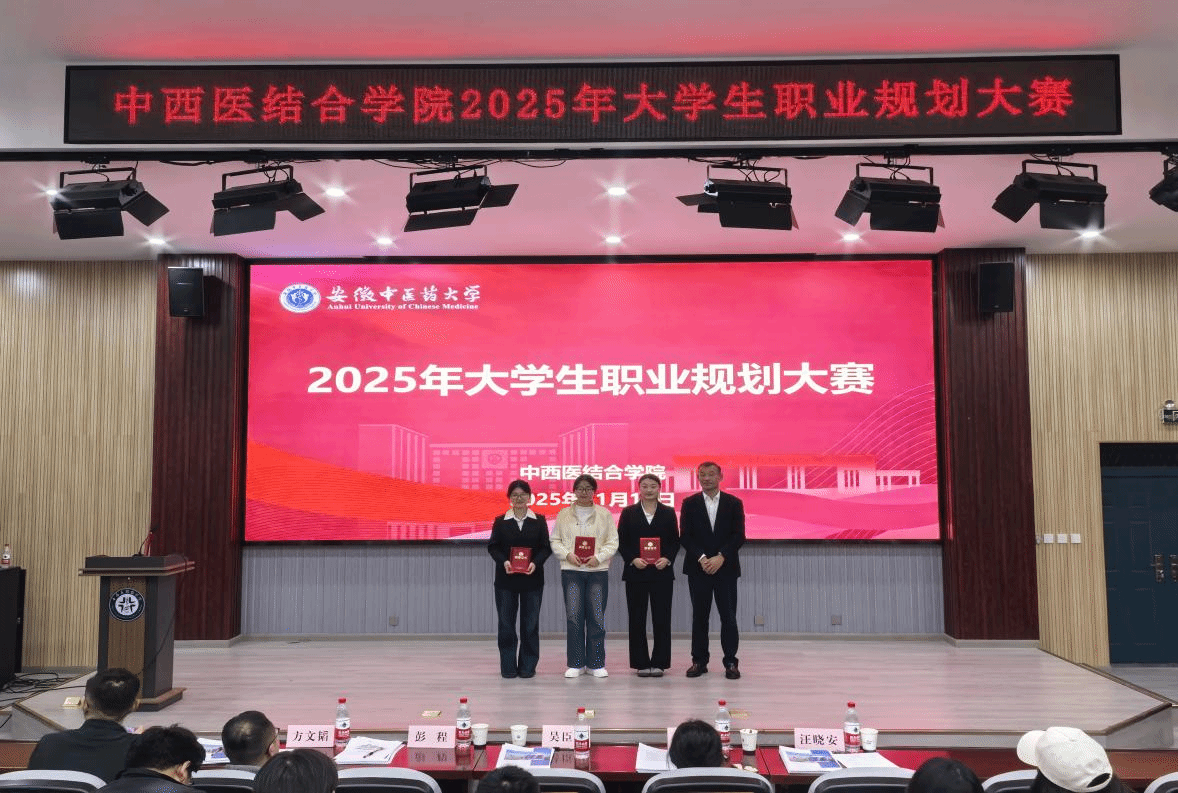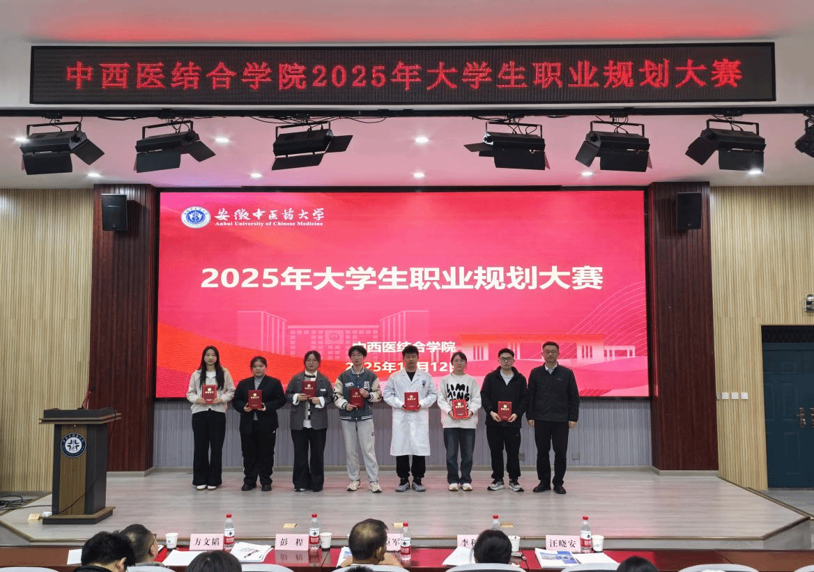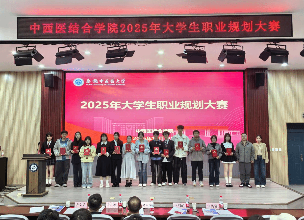 为全力提升学生职业生涯规划意识与求职能力,11月12日晚,中西医结合学院在学院B254报告厅举办2025年大学生职业规划大赛,校团委书记彭程,体育健康学院直属党支部书记、院长吴臣军,学生处就业市场科科长李利丽,药学院学工办主任方文韬和中西医结合学院辅导员汪晓安担任评委。学院各年级200余名学生现场观赛。