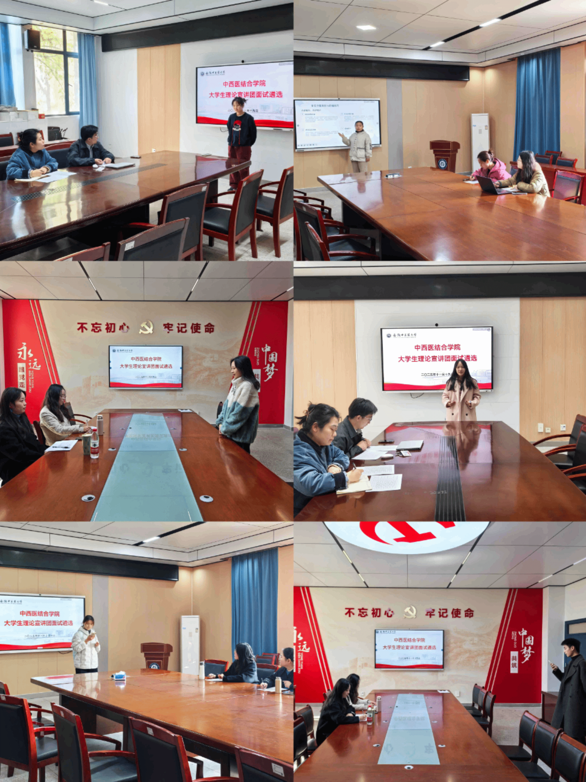 为深入学习宣传党的创新理论,弘扬中医药文化,推动中西医结合学术思想的传播与普及,中西医结合学院开展新一届大学生理论宣讲团成员遴选工作。本次遴选由学院党委把关,分团委具体实施,面向全院学生招募政治坚定、理论扎实、表达力强的优秀青年。11月19-21日,宣讲团遴选面试在学院会议室顺利举行。