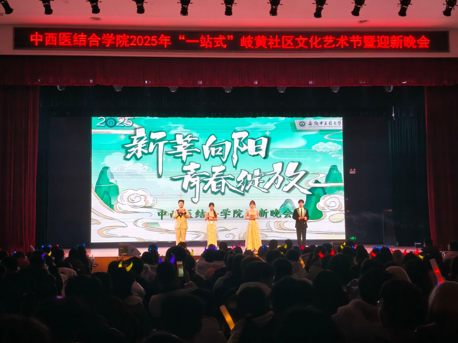 12月4日晚,中西医结合学院在大学生活动中心举办2025年“一站式”岐黄社区文化艺术节暨“新莘向阳 青春绽放”迎新晚会。学生处处长赵伟,校团委书记彭程、团委副书记徐慧,学院党政领导、专任教师代表和全体行政老师出席晚会,与同学们欢聚一堂,共赏这场融青春活力与中医底蕴于一体的文化盛宴。