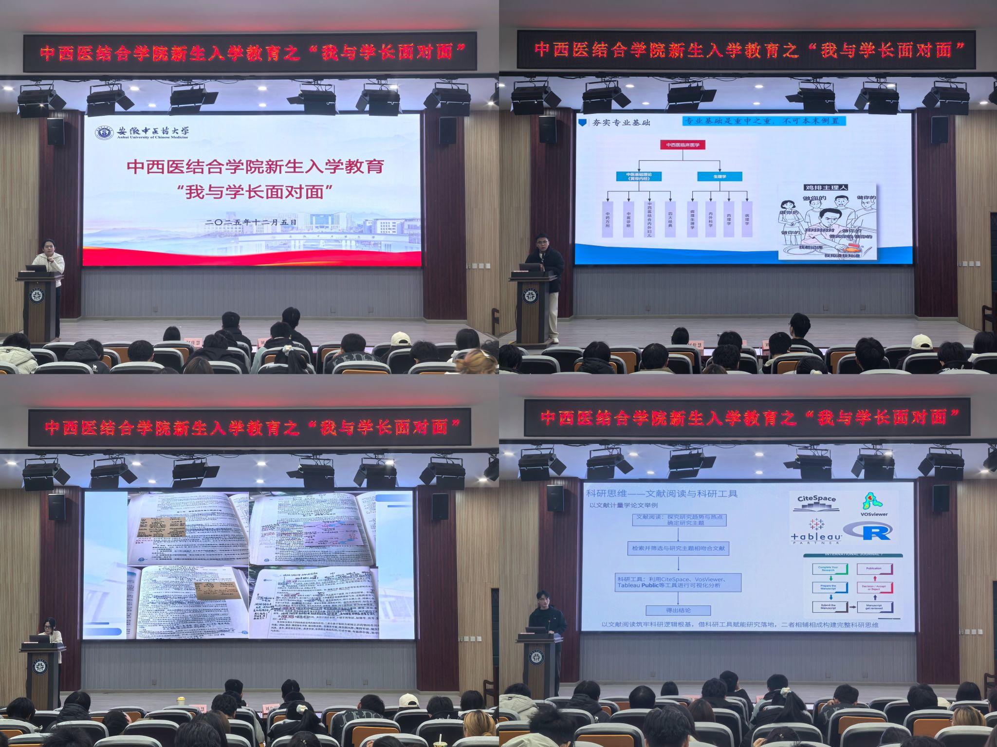 为扎实推进学风建设,落实资助育人工作实效,增强2025级新生学习积极性和主动性,激发学生成长成才的内生动力,营造良好的学习氛围,中西医结合学院在学院254报告厅举办新生入学教育之“我与优秀学长面对面”活动。本次活动邀请2021级中西医临床医学专业2026届优秀推免学生代表武洋、柯佳慧和刘金星参加本次分享。