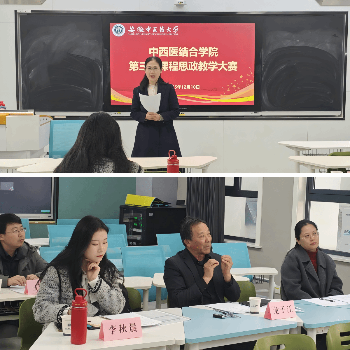 为落实立德树人根本任务,深入挖掘课程德育内涵,推动教师承担起“课程思政”主体责任,12月10日下午,中西医结合学院举办了第三届课程思政教学大赛。学院特别邀请了学院教学督导龙子江教授、马克思主义学院周娟老师、李秋晨老师担任评委。中西医结合学院院长王红松及8名参赛教师出席,比赛由副院长王靓主持。
