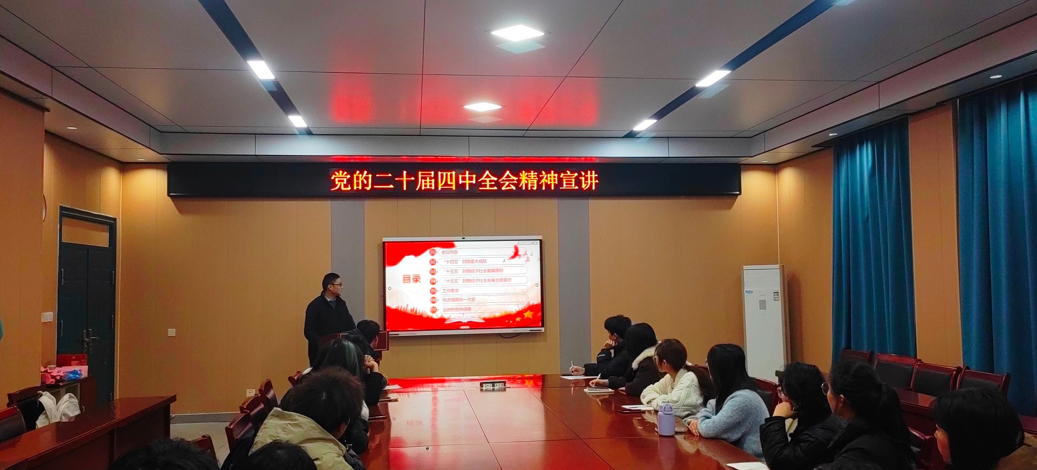 12月19日下午,中西医结合学院组织全体思政委员开展理论学习活动,邀请学院行政办公室主任云大清老师作专题宣讲,深入学习贯彻党的二十届四中全会精神。