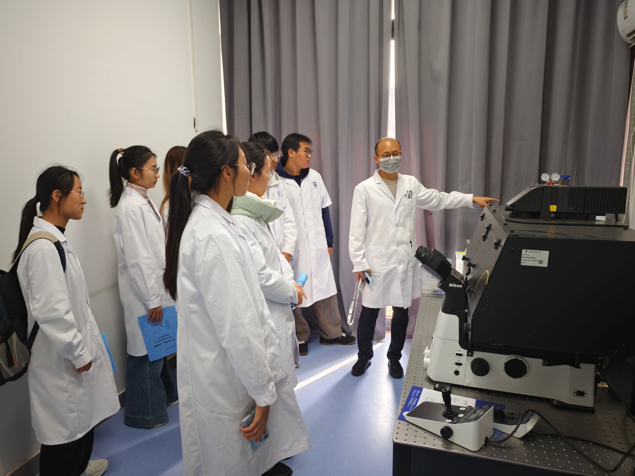 ——探科研之前沿,悟医学之创新。在中西医结合学院科研实验室,汪慎燚老师为同学们进行了生动且形象的讲解。同学们首次近距离接触到高端科研仪器设备,了解了当前中西医结合领域的前沿研究方向,例如如何运用现代分子生物学、分析化学等技术阐释中医药的作用机理。汪慎燚结合自身科研项目,阐述了从临床问题到科学假设,再到实验验证的完整创新链条,让同学们对“科研”二字有了具体而深刻地认识,切身感受到创新是医学发展的核心引擎。
