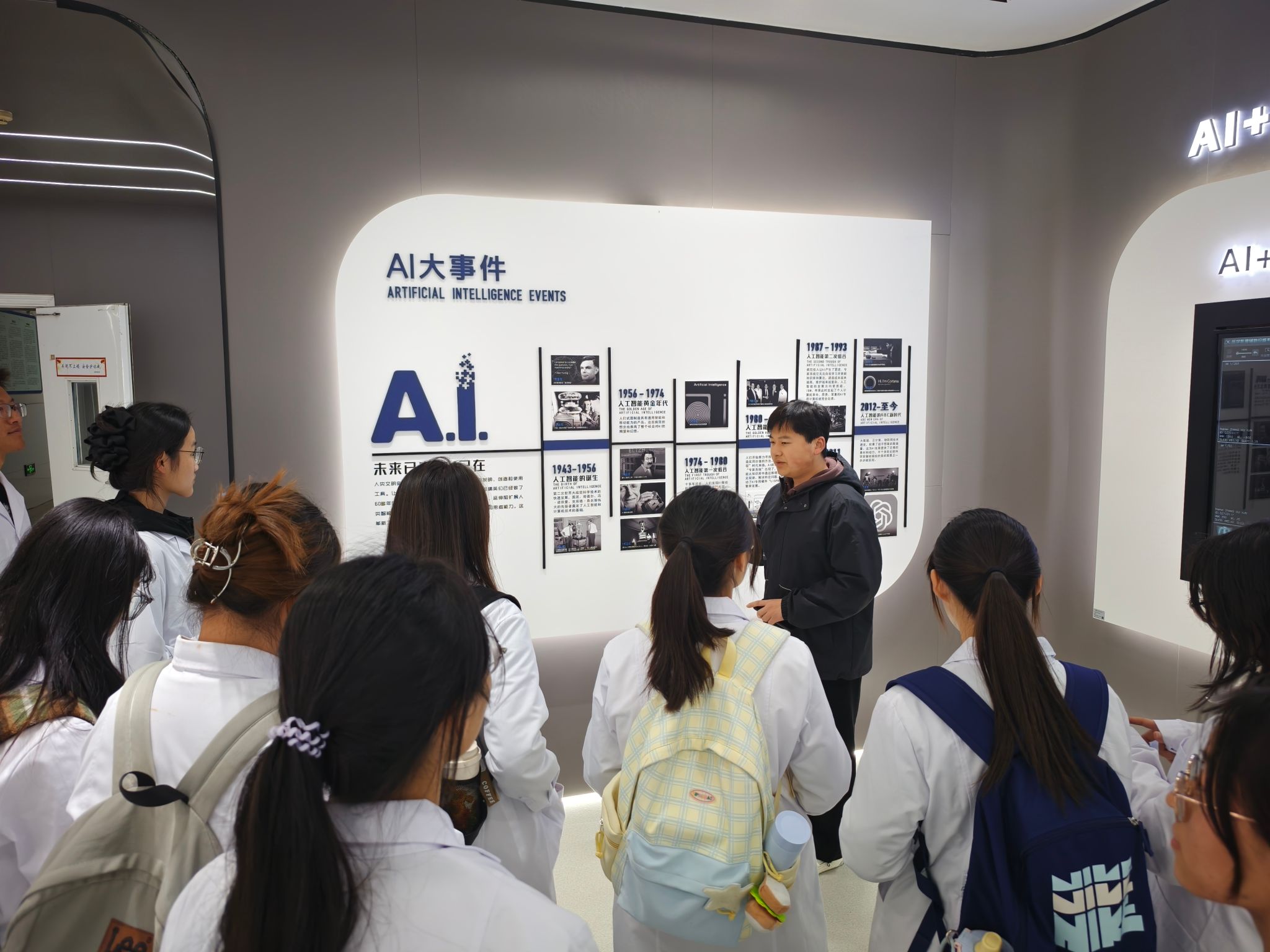 ——观技术之应用,感融合之力量。在信息工程学院AI大厅,讲解员展示了如何将人工智能、大数据、虚拟现实等现代信息技术应用于医学领域。通过现场演示与案例介绍,同学们直观感受到了智能辅助诊断、健康数据挖掘、医学影像处理等“医学+工科”的交叉融合成果。此次参观不仅让同学们惊叹于科技的魅力,更在他们心中播下了跨学科思维的种子,深刻体会到未来“新医科”人才所需具备的复合型能力。
