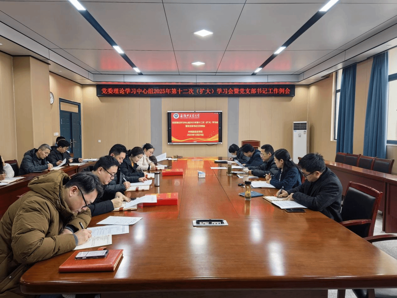 12月24日,中西医结合学院在216会议室举行党委理论学习中心组(扩大)学习会暨党支部书记工作例会。会议由学院党委书记李舰主持,学院党委委员、各党支部书记参加。