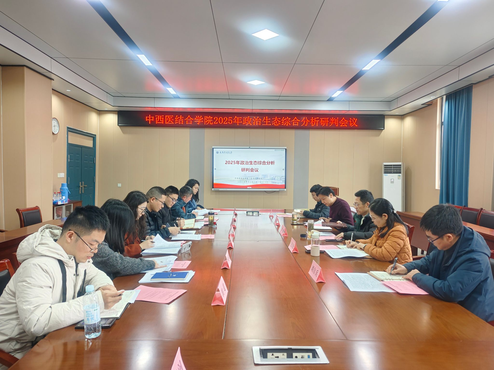 为深入学习贯彻党中央关于全面从严治党的重要部署全面精准把握学院的政治生态状况,进一步压实管党治党政治责任。12月31日下午,中西医结合学院在至精楼B216会议室召开2025年政治生态综合分析研判会议,学院党政领导、各行政办公室负责人参加会议。会议由党委书记李舰主持。