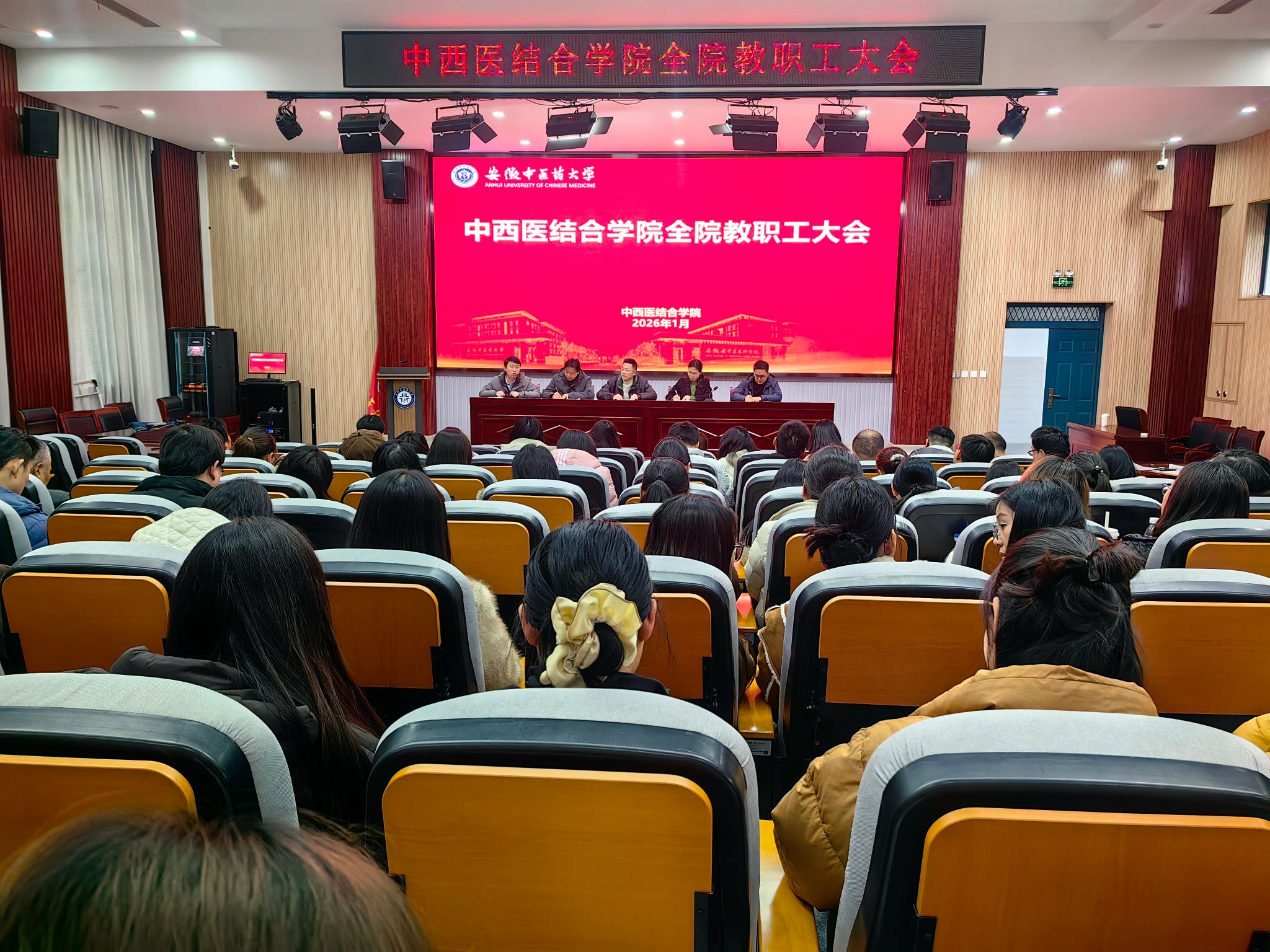 1月13日,中西医结合学院在254报告厅召开全院教职工大会。学院党政领导、全体教职工参会,会议由学院党委书记李舰主持。