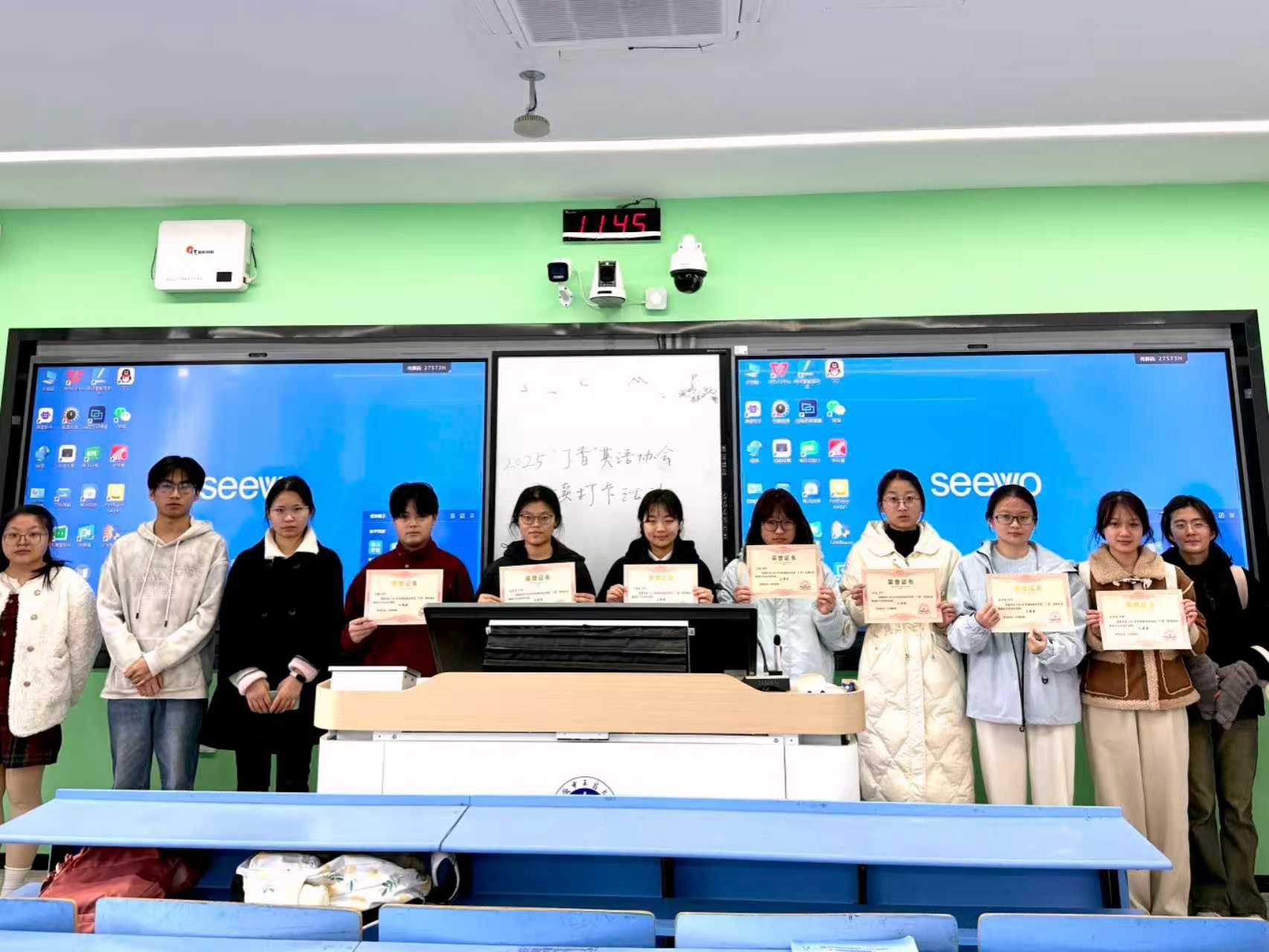 活动结束后,“丁香”英语社依据“打卡天数×70% + 阶段测试成绩×30%”的积分规则,评定出以下获奖同学: