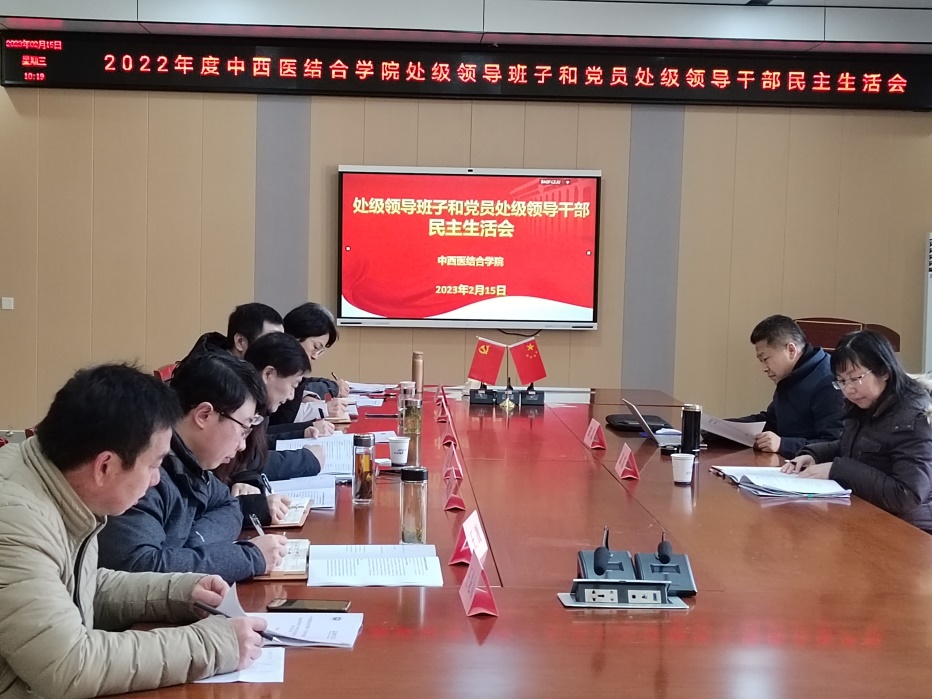 根据《中共安徽中医药大学委员会关于开好2022年度处级领导班子和党员处级干部民主生活会的通知》文件精神,2月15日,中西医结合学院党委组织召开年度处级领导班子和党员处级干部民主生活会,学校第十督导组组织部部长田磊、副处级组织员高霞,学院党政班子、党委委员参加会议,会议由该院党委书记尹必武主持。