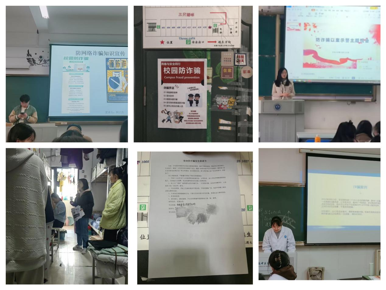 各班级积极响应学院号召,通过形式多样、丰富多彩的活动,广泛普及宣传防电信诈骗相关知识。各班辅导员深入学生宿舍走访,以班级为单位开展防诈骗主题宣传教育活动,让每位同学轮流当反诈信息员,及时播报诈骗案例和防范注意事项;积极开展防范诈骗主题班会活动,并通过班级微信群、QQ群、官Q等推送防诈骗知识,为每位同学科普诈骗手段和方式;在寝室张贴校园防诈骗宣传海报,签署宿舍防诈骗安全承诺书,营造反诈防诈的浓厚氛围,增强了防范意识和自我保护能力。