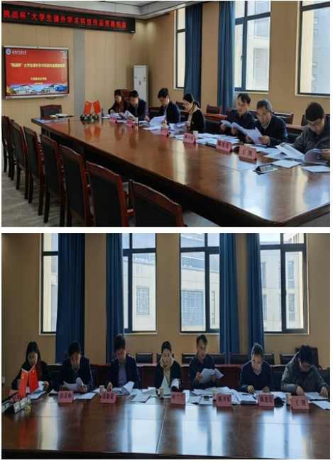 本次比赛共收到学院学生自然科学类8项,哲学社科类14项,科技发明类25项作品。评委专家秉持公平公正公开原则依次对各项作品进行打分,并提出修改意见。最终遴选出十件优秀作品参加校赛。