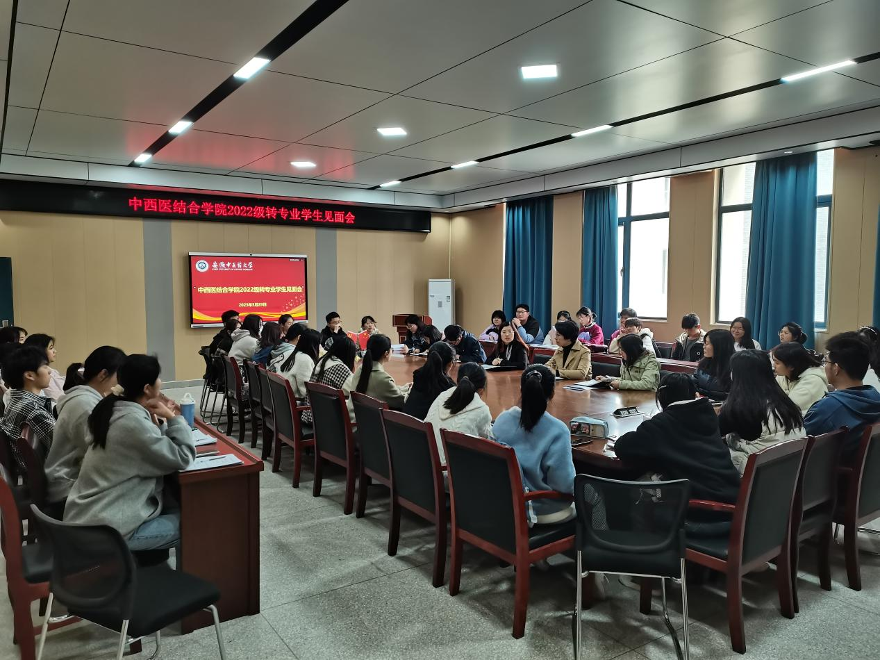 3月29日中午,中西医结合学院在学院216会议室召开了2022级转专业学生见面会,院党委副书记顾义俊、副院长江爱娟、教学办、党务办、2022级辅导员老师以及46名转专业学生参加了会议。会议由顾书记主持。