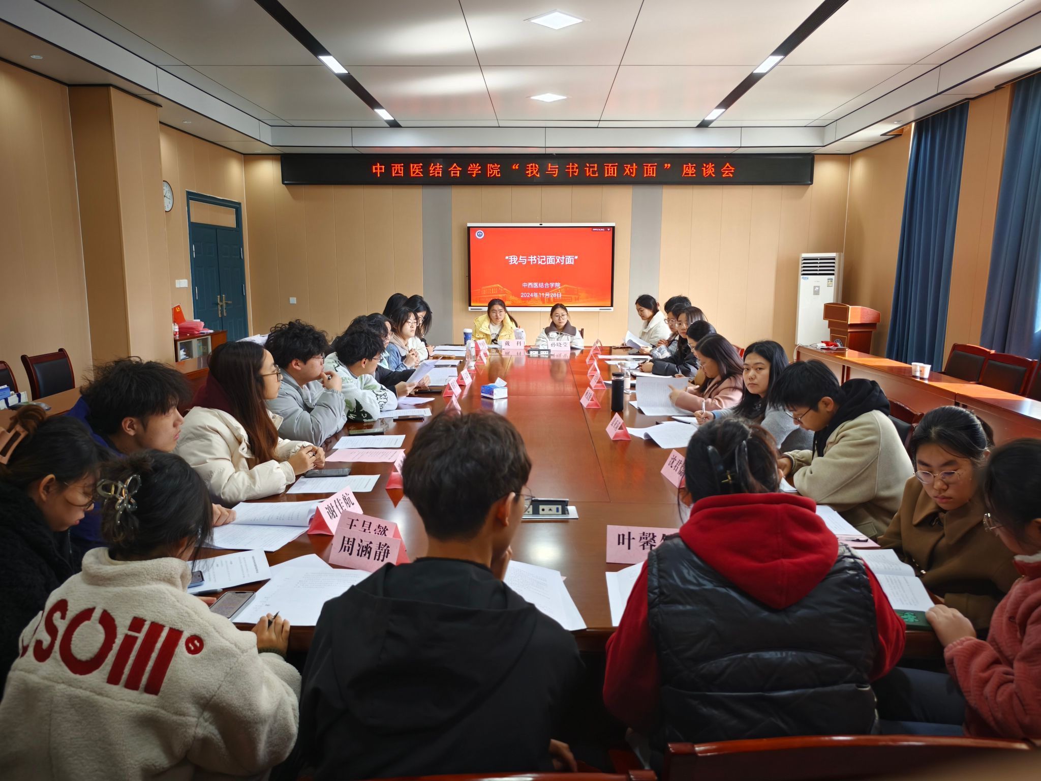 11月28日下午,中西医结合学院在至精楼B216会议室举办了“我与书记面对面”交流座谈会,学院党委书记王红松,党委副书记顾义俊,学工办主任夏亚莉、分团委副书记邓思节以及各年级学生代表参加座谈会。会议由顾义俊主持。