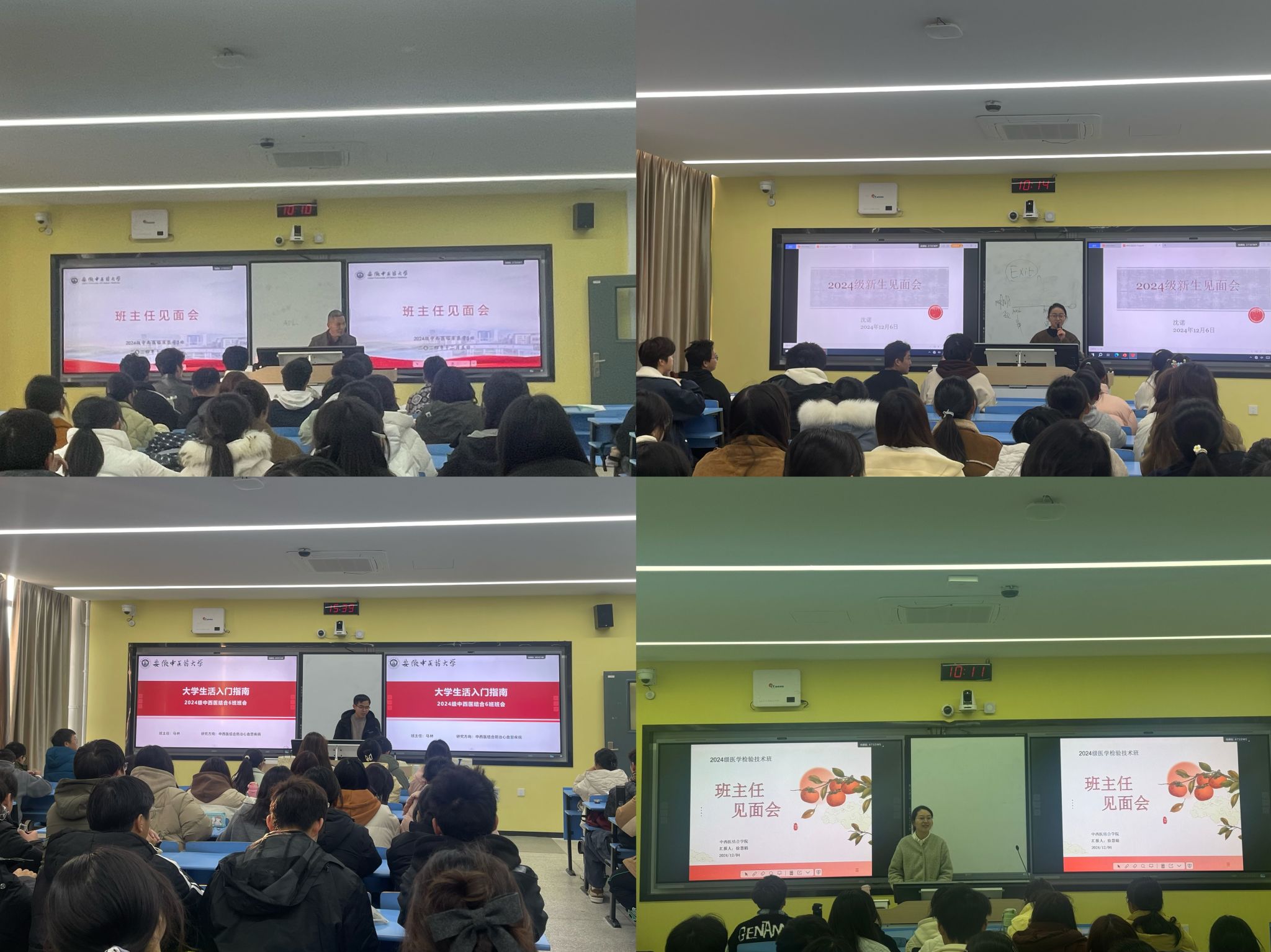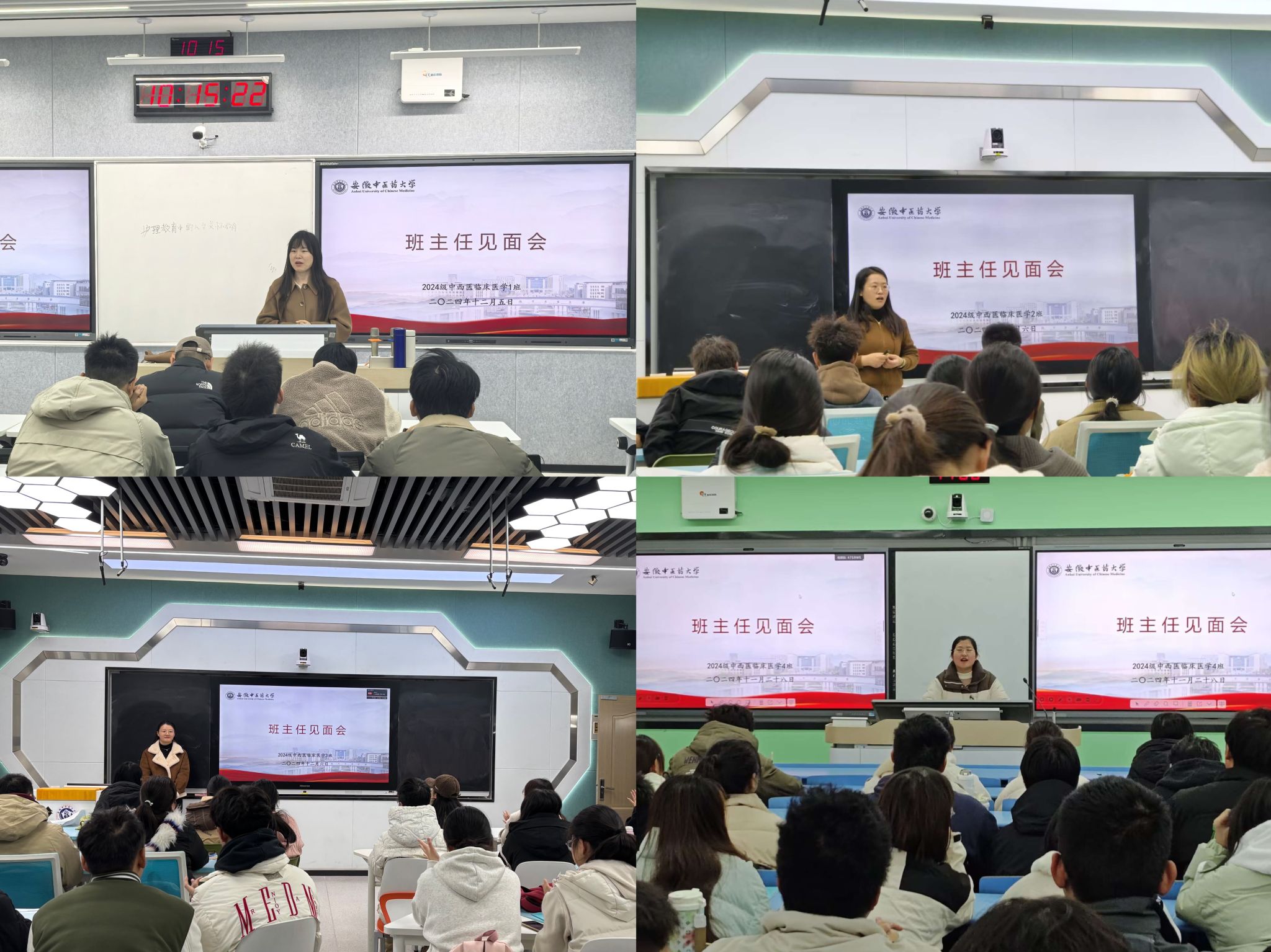 为科学有效地加强2024级本科生班级建设,搭建师生沟通桥梁,助力学生更好地适应大学生活,明确个人发展方向,中西医结合学院在教学周第13-14周举行2024级班主任新生见面会,李凤、王雨晴、陈丽霞、毛艳梅、朱继民、马林、沈诺和徐慧娟8位班主任分别在所带班级进行分享交流,新生辅导员和全体新生参加活动。
