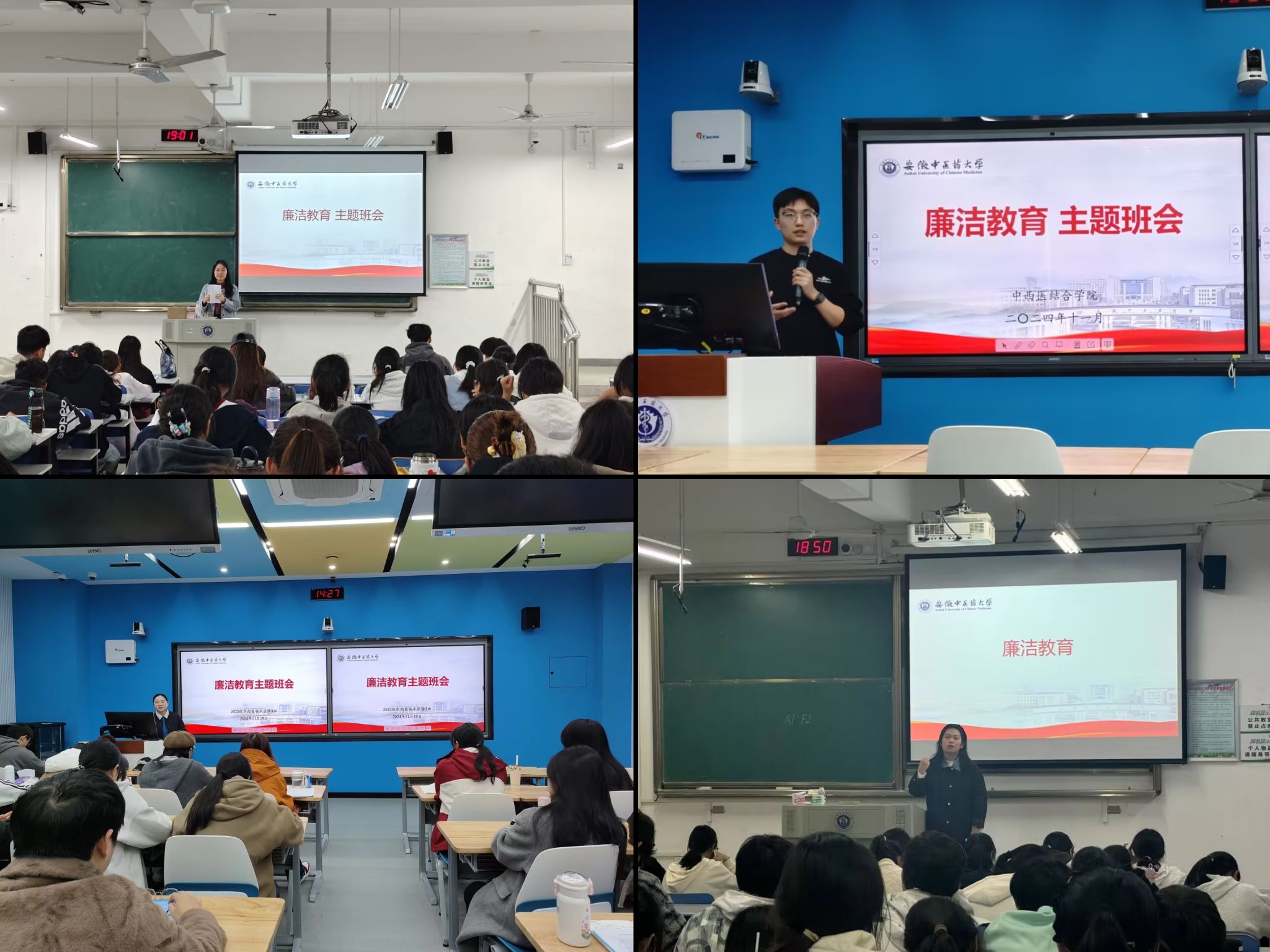 中西医结合学院坚持把廉洁教育贯穿学院人才培养的全过程,引导全院师生提高廉洁意识,积极宣传廉洁理念、廉洁典型,激发师生崇高理想追求。学院将继续深入开展党性党风党纪教育、持续加强廉洁文化建设,积极培树清风正气的政治生态和干事创业的良好氛围,为学院立德树人提供强大的精神动力和文化支持。(中西医结合学院/文图 王红松/审核)
