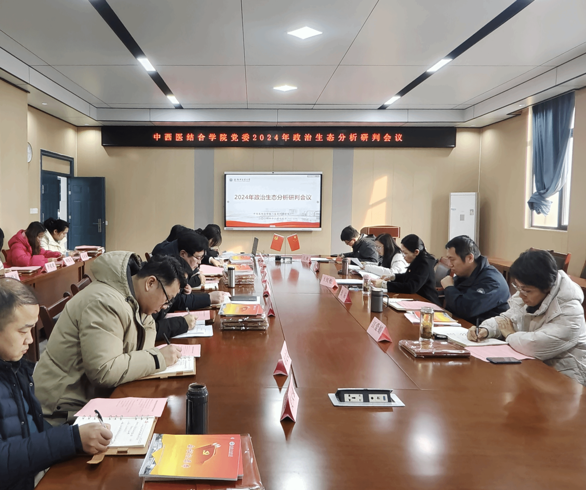 12月19日下午,中西医结合学院在至精楼B216会议室召开2024年度政治生态分析研判会议,学院党政领导、党委委员、纪委委员、各党支部书记、各系(中心)主任和各行政办公室主任。会议由党委书记王红松主持。