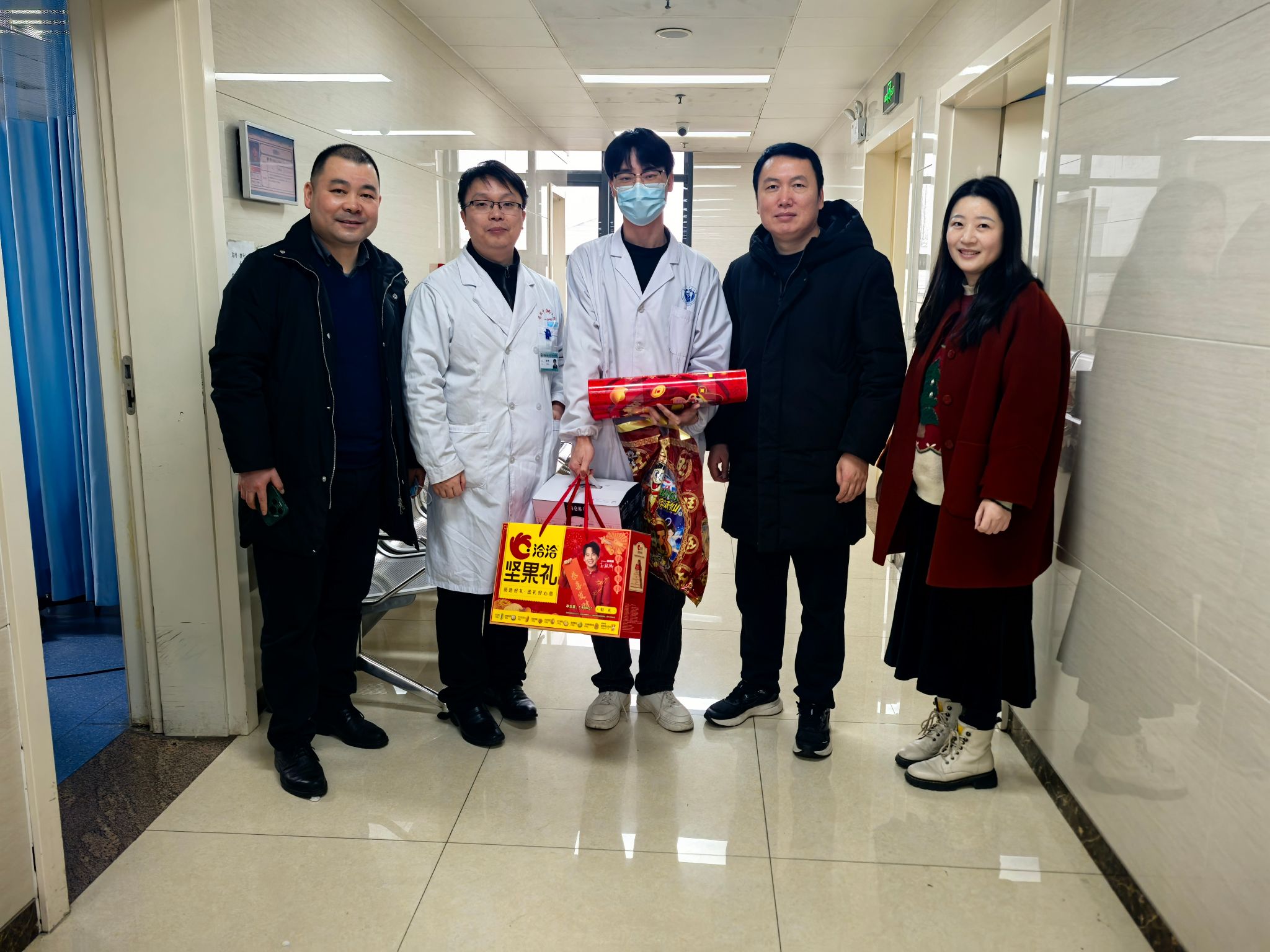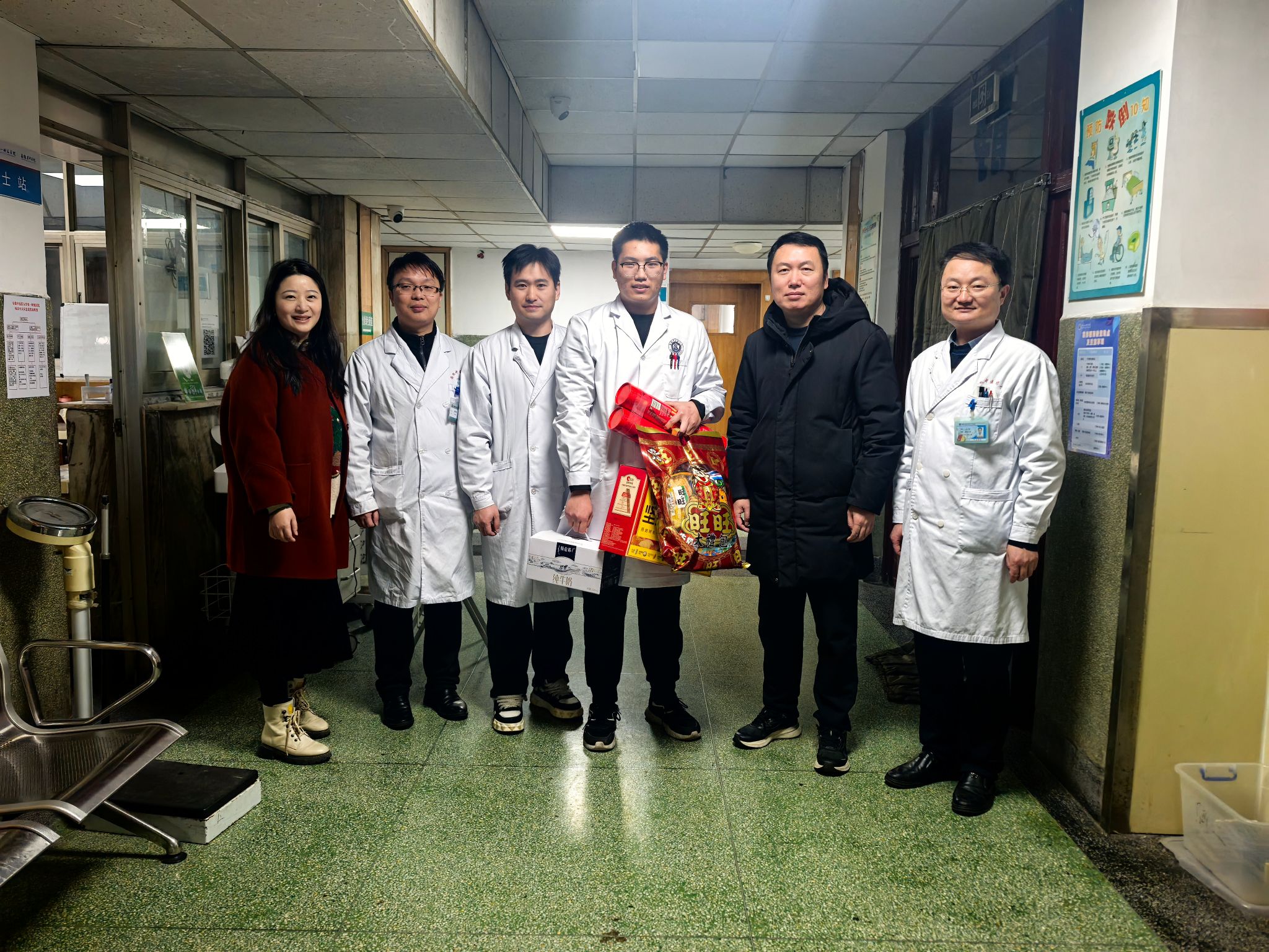 在新春佳节即将到来之际,中西医结合学院院长蔡标、分团委书记黄顺一行带着学院的深情厚意,前往安徽中医药大学第一附属医院亲切看望春节假期仍坚守在实习岗位的实习生,为他们送上新春的祝福与温暖的大礼包。