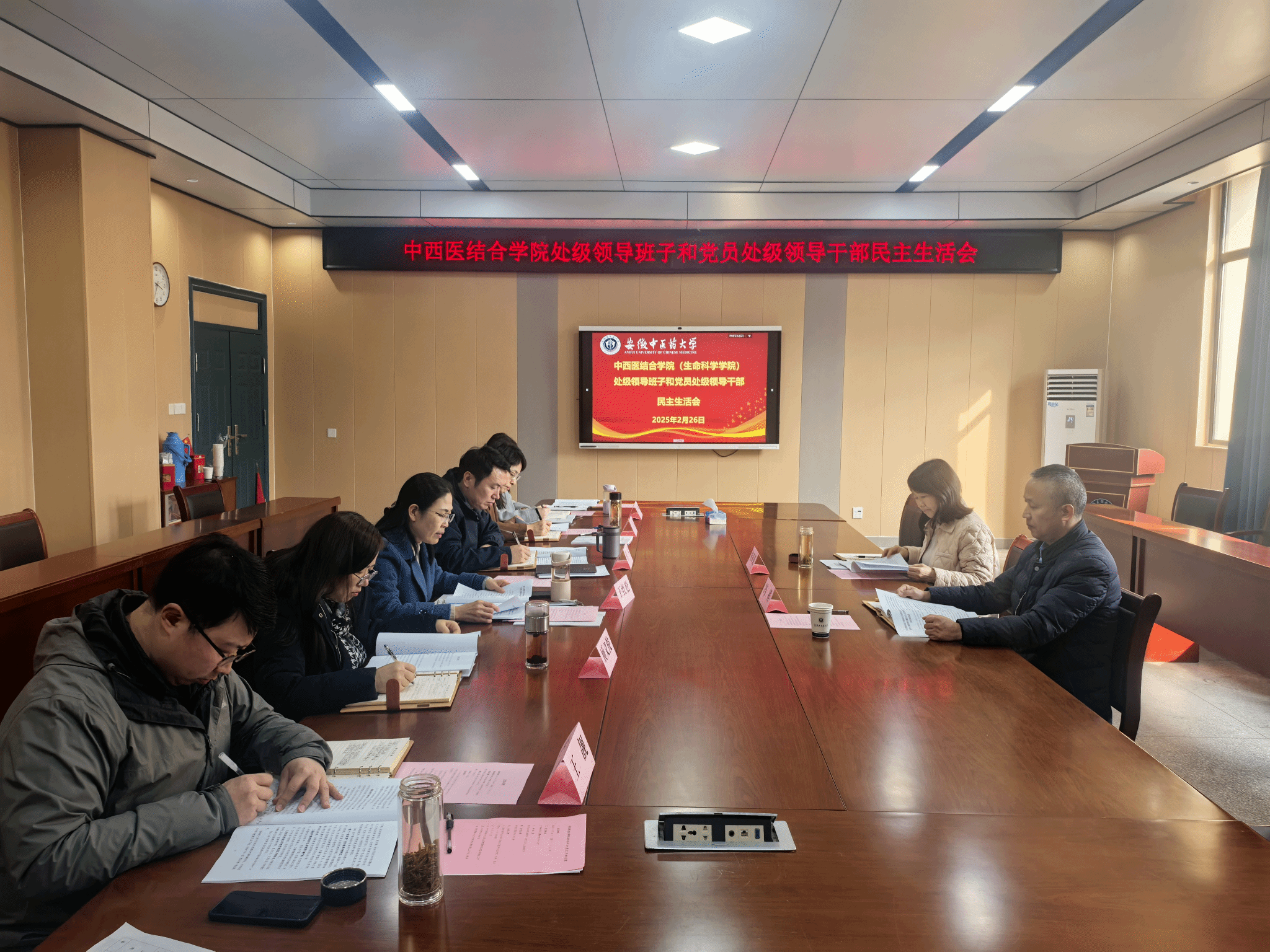 2月26日,中西医结合学院2024年度党员领导干部民主生活会在至精楼216会议室召开。学校党委委员、副校长、第六督导组组长桂双英,学生处处长冯祥列席,中西医结合学院党委委员参加,会议由学院党委书记王红松主持。