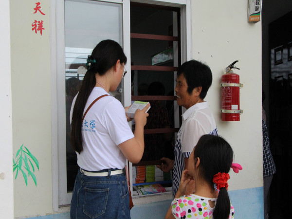 7月7日下午,医生专家们根据上午对村民们的义诊情况,将携带来的常用药品捐赠给当地村民。志愿者们将药品箱搬至指定位置,在医生专家的指导下,志愿者们将药品逐一送交到所需村民手中,还耐心给他们讲解药品的用法及注意事项。李大爷接过药品激动地说:“感谢学校和医院为我们带来这样的福利”。